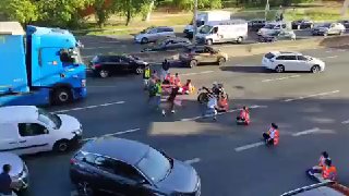 תאונת שרשרת של קבוצת רוכבי קורקינט...